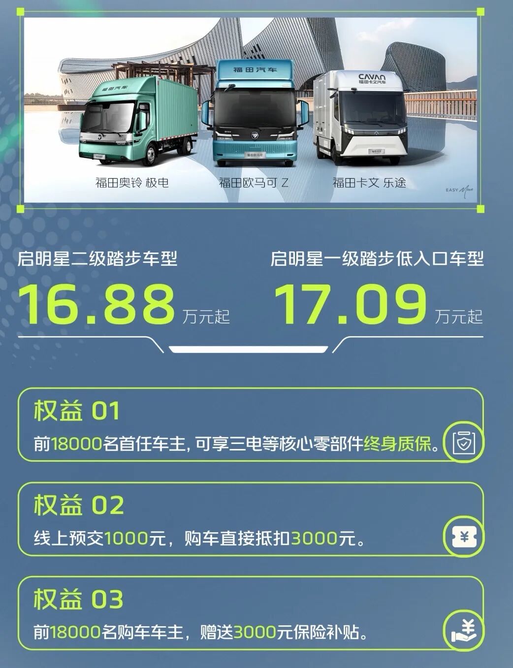 当2025年新能源商用车市场渗透率突破30%,行业竞争从规模扩张转向价值深耕的关键节点,福田汽车(600166)重磅推出启明星产品。这款基于全球首个纯电动轻卡专属平台打造的力作,以16.88万元起的亲民定价,彻底摒弃“油改电”妥协路径,用正向开发的硬核技术打破“技术溢价”,让物流从业者轻松触及高效、经济、智能的未来运力解决方案。