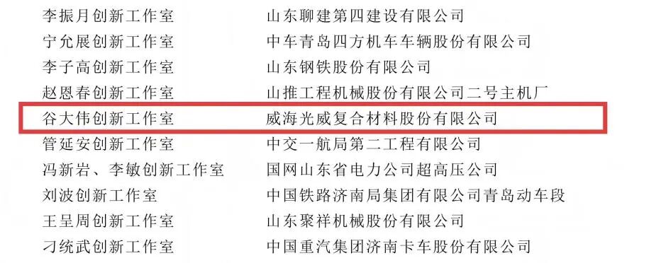 近日,中华全国总工会办公厅公布了2025年全国劳模工匠创新工作室支持建设名单。威海光威复合材料股份有限公司“谷大伟创新工作室”荣列其中。