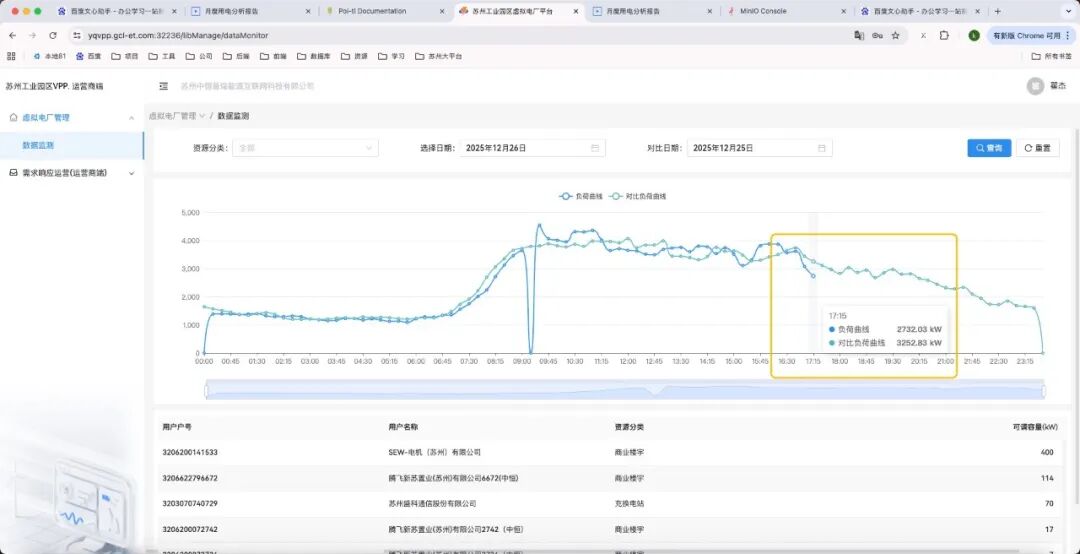 试运行期间,苏州中恒普瑞成功调动了工业园区、高新技术产业、传统制造业等多行业多家客户参与响应。本次调节资源涵盖充电桩、热水器、空调、照明等多种负荷类型,实现了多场景、柔性化的用电调节。运行期间,系统负荷大幅平稳下降,响应率准确率达95%以上,各项指标均符合预期,全流程验证了公司虚拟电厂平台的可靠性与实用性。