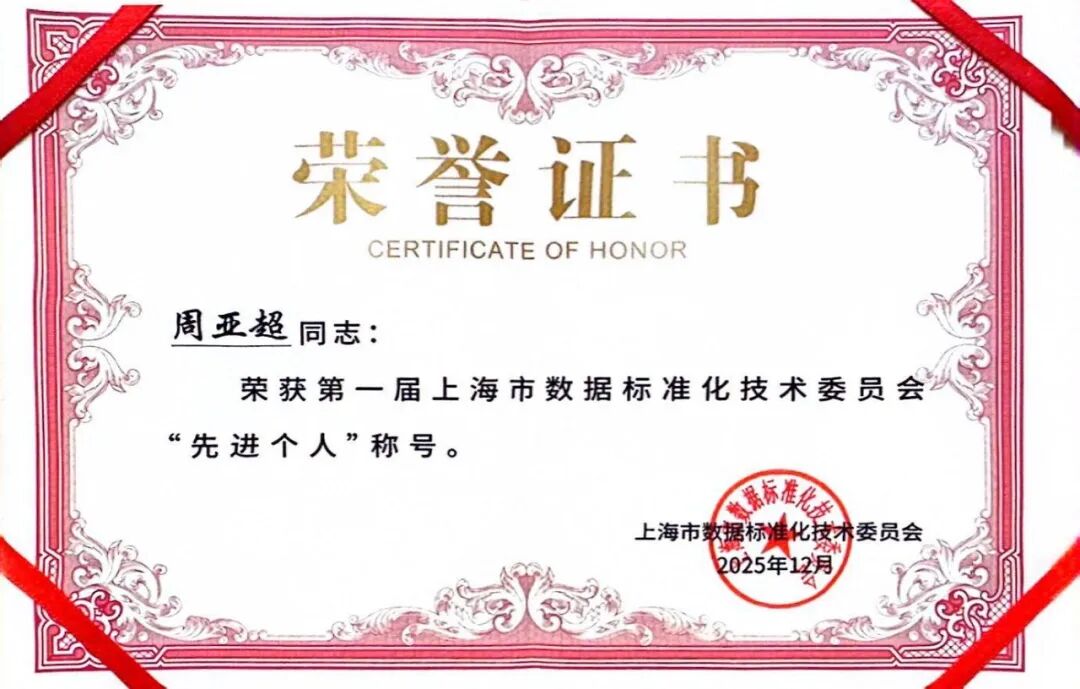 安恒信息周亚超荣获第一届上海市数据标准化技术委员会先进个人称号