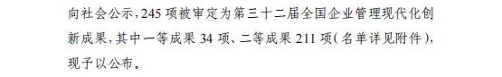 据悉,全国企业管理现代化创新成果奖是经国务院批准设立、由中国企业联合会与中国企业家协会组织开展,是我国唯一的国家级企业管理创新表彰项目。