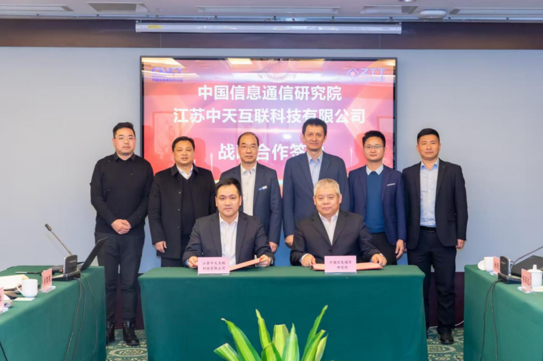 中国信通院副总工程师何伟、中天互联总经理张贤根作为双方代表进行签约,中国信通院总工程师敖立与中天科技(600522)数字产业集团总裁谢书鸿、中天科技数字产业集团副总裁时宗胜等相关人员共同见证。