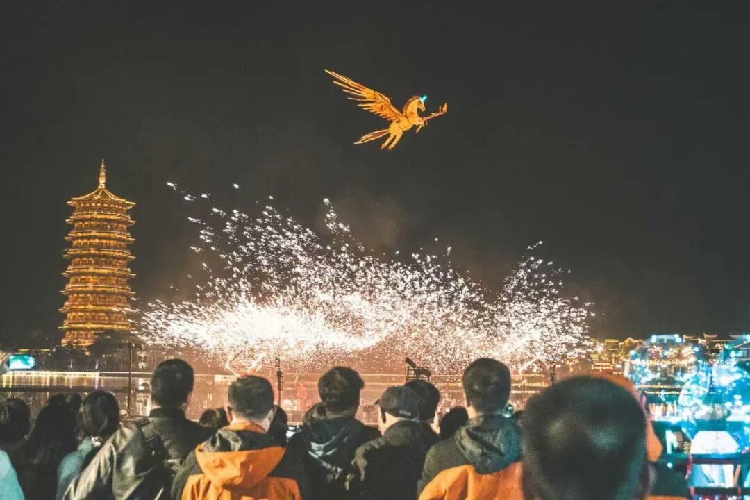 今年元旦核心亮点集中在“火之盛宴”系列活动:天马流星表演、1600℃火龙钢花非遗展演、跨年烟花秀与孔明灯祈福联动,打造沉浸式夜间体验,成为游客打卡核心。日间民间绝活(扔飞斧、顶缸)、暖冬音乐会等演出轮番上演,丰富全时段体验。汉服妆造、非遗手工等互动项目提升游客停留时长,全日票与夜场票阶梯定价策略适配不同需求,整体游客满意度较高。不少游客反应“天马流星+孔明灯的夜空组合震撼又浪漫,值得专程打卡”,非遗火龙钢花被赞“亲眼见才懂‘火树银花’的惊艳”。