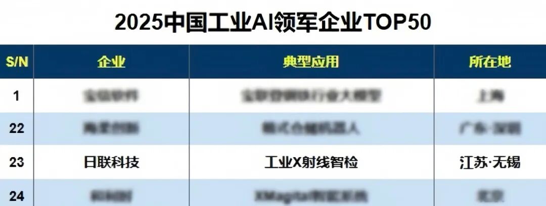 智检领航!日联科技入选中国工业AI领军企业TOP50