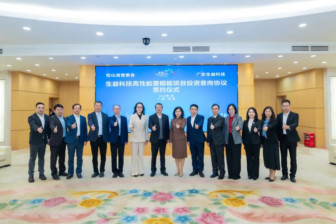 2026年1月4日,广东生益科技股份有限公司与东莞松山湖管委会就生益科技高性能覆铜板项目投资意向协议举行了签约仪式,在相关市领导的见证下,双方代表签署了《项目投资意向协议》。生益科技董事长陈仁喜携生益科技总级管理人员及项目组成员参加仪式。