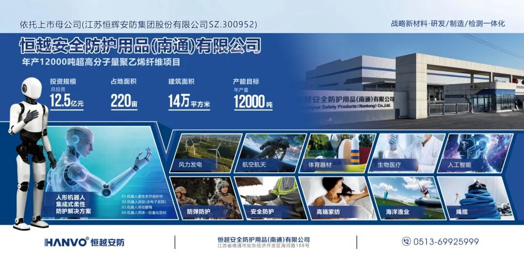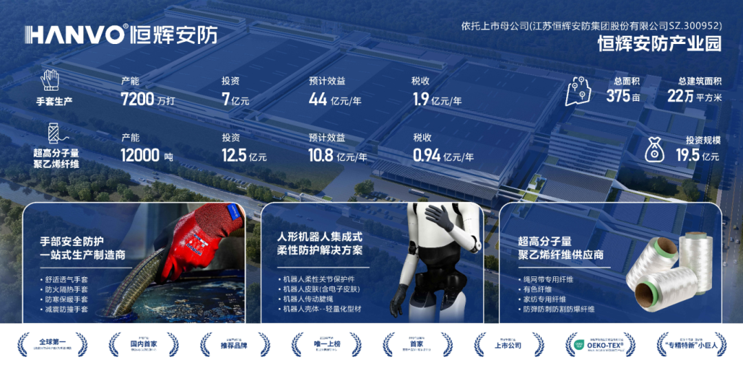 恒辉安防深耕实体产业20余年,始终聚焦功能性安全防护手套细分领域,积累的核心优势为机器人业务的持续推进提供了坚实支撑。一方面,公司拥有1万余种手套的研发生产经验,在精细化针织技术、胶类弹性体应用、浸渍涂层工艺等方面形成深厚技术储备;另一方面,作为高端防切割手套核心原材料的超高分子量聚乙烯纤维,不仅已实现3,000吨产能满负荷运营,更规划了12,000吨总产能(其中首期为已经建成投产的4,800吨可转债项目),该材料同时也是机器人腱绳的关键核心材料,为机器人业务提供了核心供应链保障。