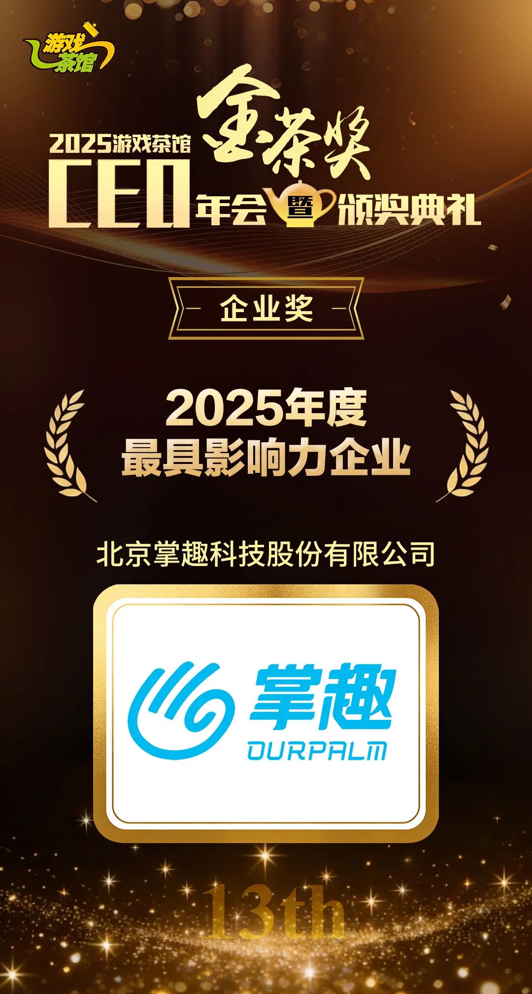 1月4日,由游戏茶馆主办的第十三届金茶奖年度评选结果正式揭晓,掌趣科技(300315)凭借在游戏研发创新、全球市场深耕及AI技术融合应用等领域的突出表现,成功斩获“2025年度最具影响力企业”大奖,充分彰显行业对其核心竞争力与产业引领价值的高度肯定。