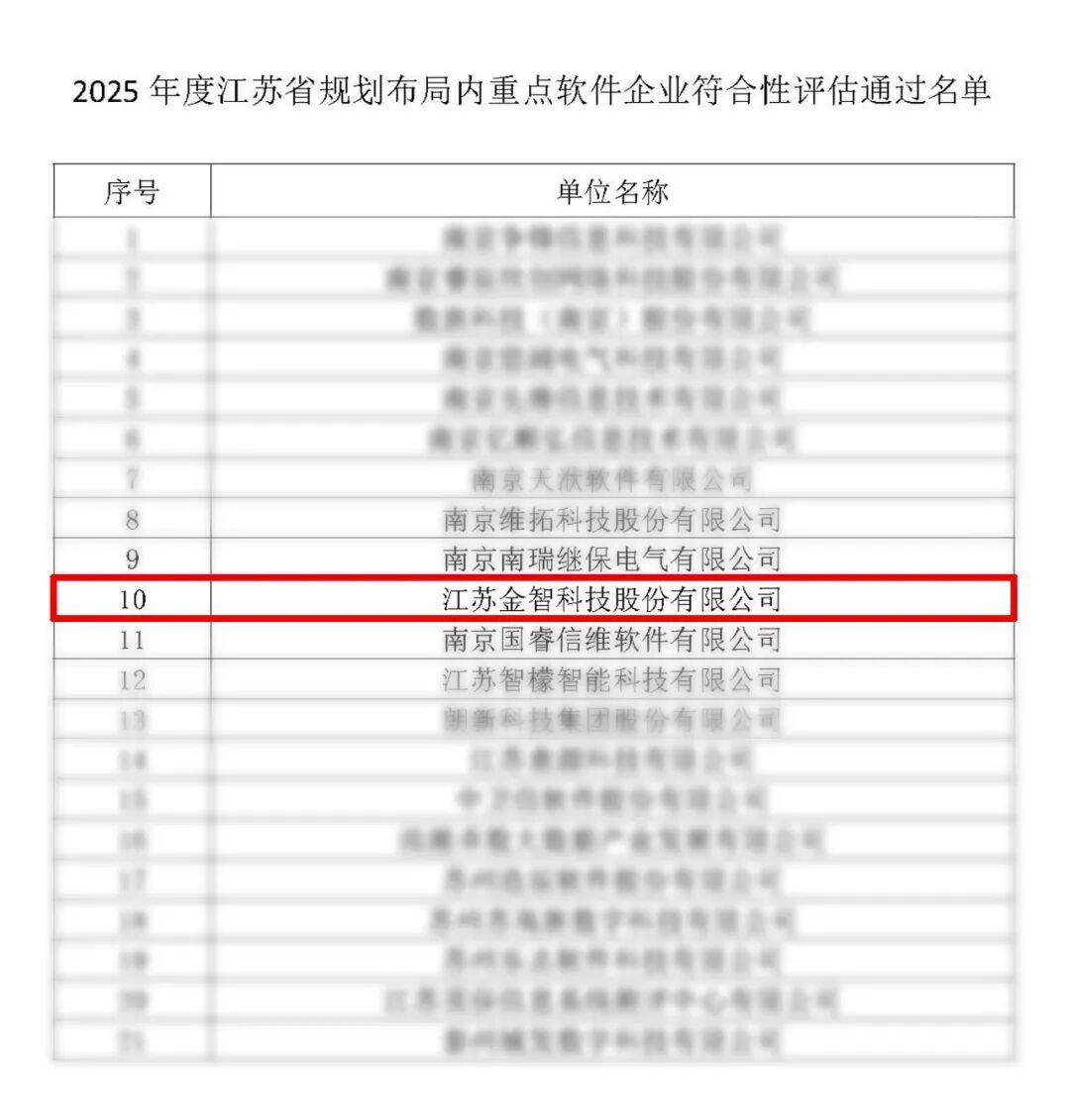 金智科技荣获江苏省规划布局内重点软件企业等多项荣誉