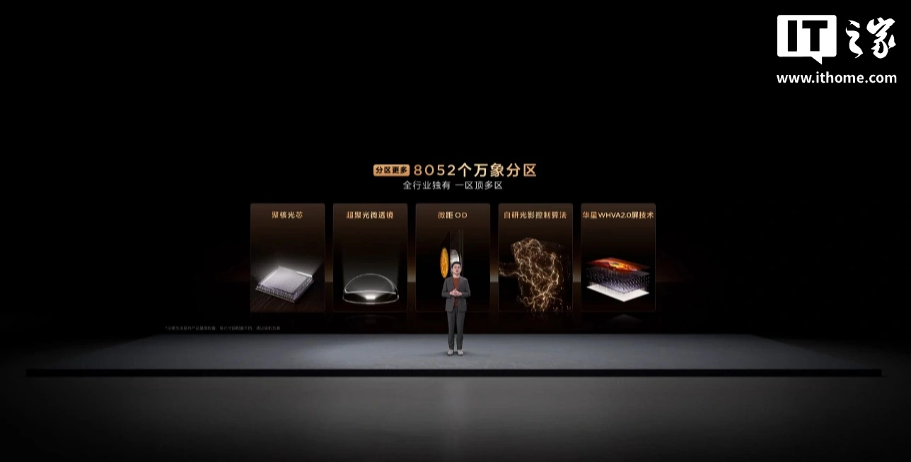 据介绍,TCL Q10M Pro 支持万象分区技术 + 超级量子点色彩技术 + 超级蝶翼华曜屏技术,行业独有一区顶多区 8052 个万象分区,支持 100% BT.2020 全局高色域、绚彩 XDR 8500nits 峰值亮度。