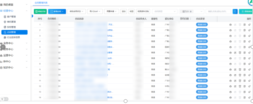 通过搭建智慧管理平台系统,实现了经营管理、造价咨询、全过程管理、招标代理、建筑监理等业务的全过程精细化管理。平台实现了合同从编码、台账、审批到收回归档的全流程数字化管理,使合同管理更加规范透明。