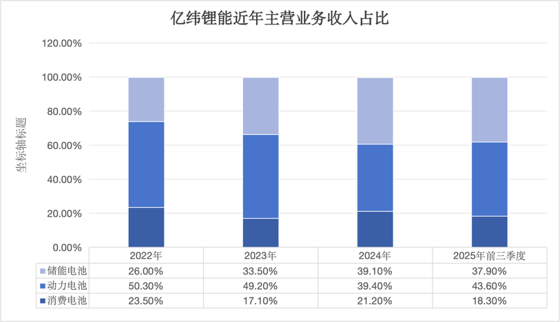 成立于2001年的二线电池厂商亿纬锂能同时布局消费电池、动力电池与储能电池,并号称在这三个领域均处于领先地位。招股书显示,目前这三项业务在亿纬锂能的营收中占比分别约为20%、40%、40%。