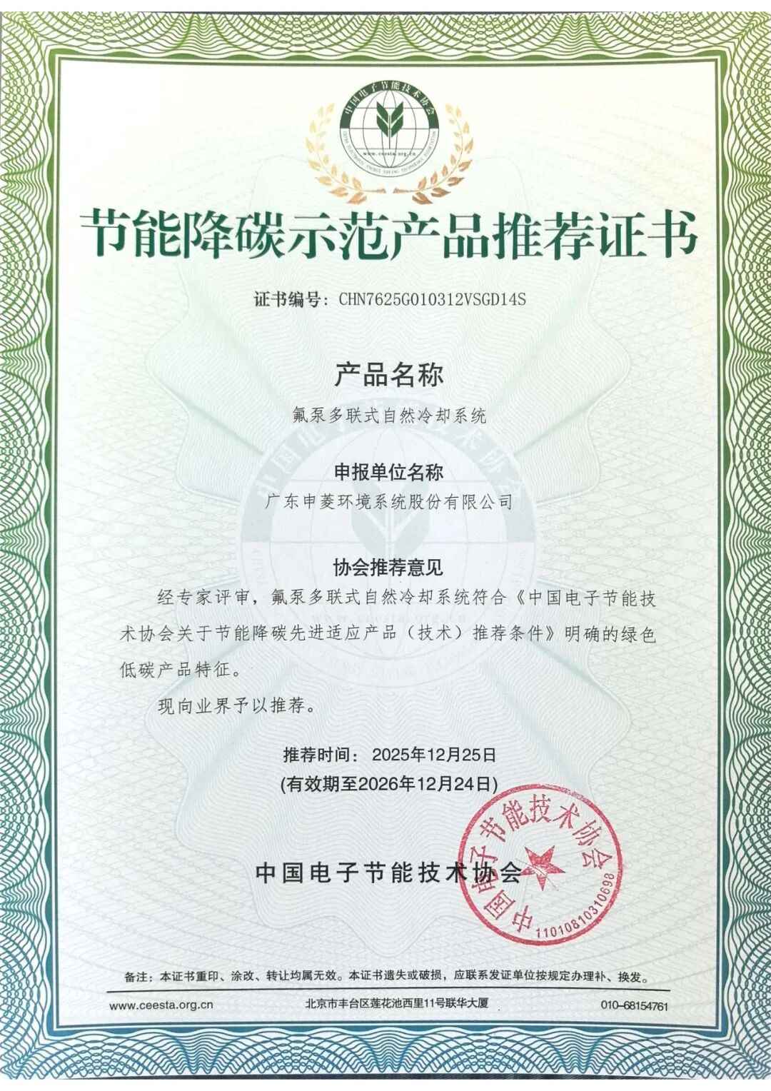 近日,经中国电子节能技术协会严苛评审与权威认证,申菱凭借三项自主创新成果——高热流节能液冷温控技术、氟泵多联式自然冷却系统、高效节能机房风冷氟泵一体机,成功入选《全国节能降碳示范产品技术推荐名单》,并正式获颁推荐证书,彰显了企业在绿色低碳领域的技术硬实力与行业标杆地位。
