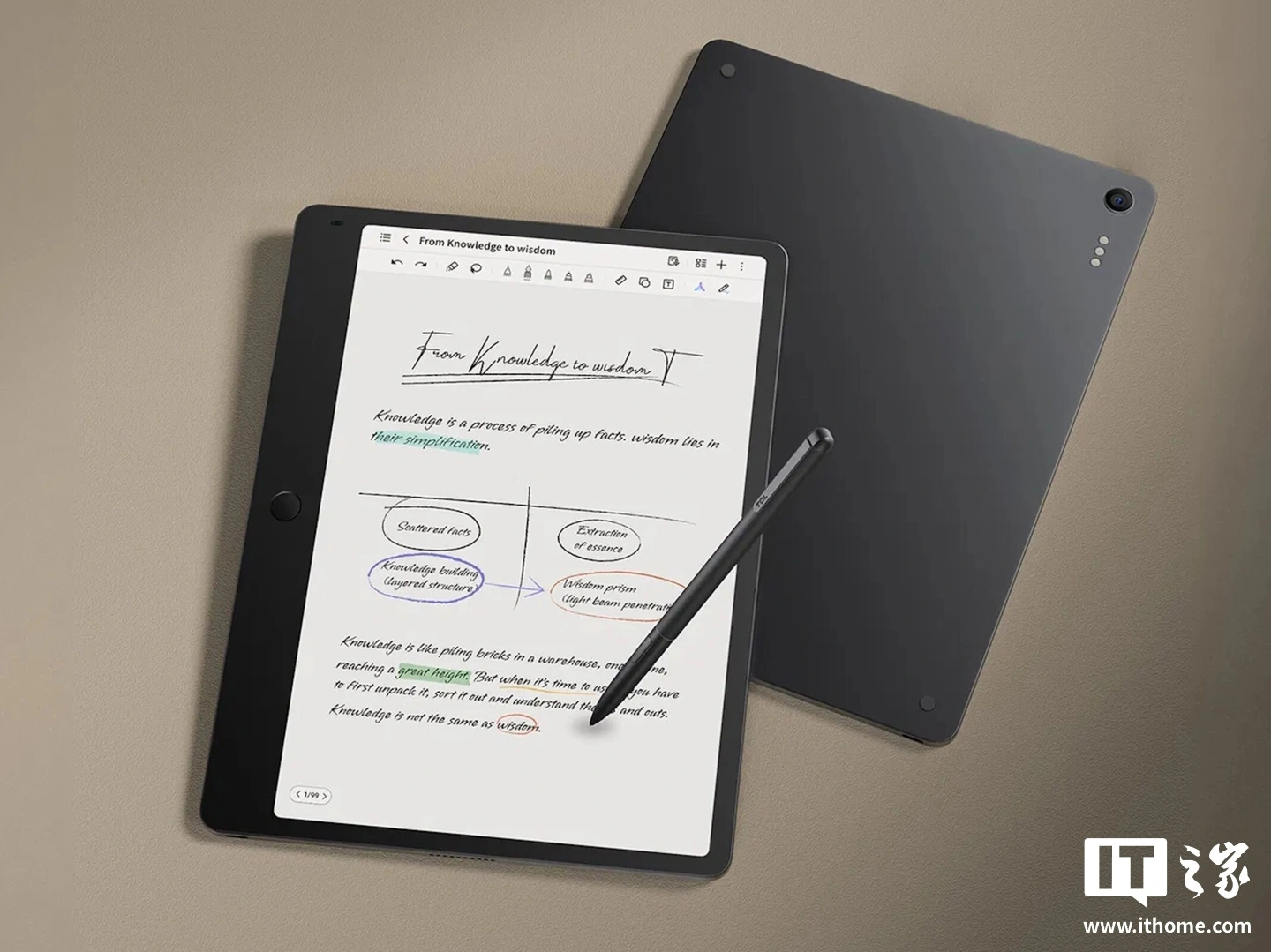 这款产品实际已在去年 12 月末发布,重 500 克,机身尺寸为 260.1*196.5*5.5mm,便携性适中,搭载一块彩色显示屏,分辨率为 2200*1440,支持 120Hz 高刷,可呈现 1670 万种颜色,也支持 NXTPAPER 类墨水屏显示技术。