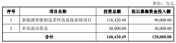 中国经济网北京1月6日讯壹连科技(301631)(301631.SZ)昨晚披露的向不特定对象发行可转换公司债券预案显示,本次向不特定对象发行可转换公司债券募集资金总额预计不超过120,000.00万元(含本数),扣除发行费用后的募集资金净额拟投资于以下项目:新能源智能制造柔性电连接系统项目和补充流动资金。