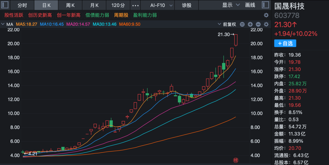 国晟科技股价上涨开始于去年10月底,在2025年10月31日至2026年1月6日期间累计涨幅高达370.2%。其间多次触及股价异常波动,1次触及严重异常波动情形。