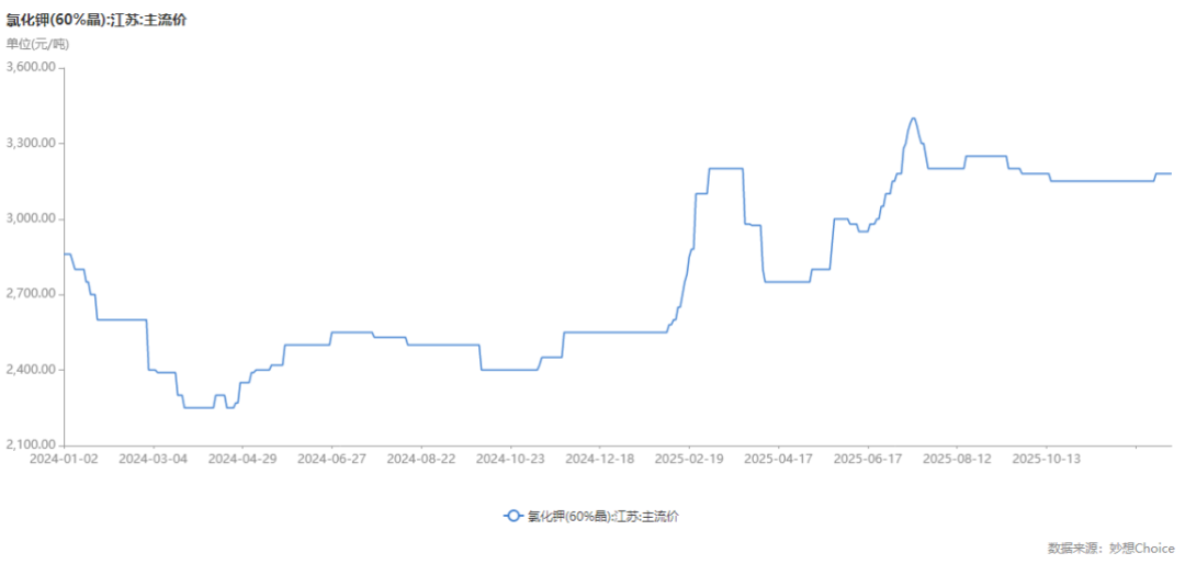2025年6月,钾肥进口谈判价格为346美元/吨,较上年上涨73美元、27%。国内市场价格随之反映,下半年持续稳定在近两年内的高位。