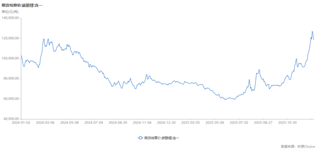 而锂盐方面,随着供给端高成本产能出清,叠加新能源汽车与储能行业需求超预期增长,至2025年末碳酸锂价格回升至12万元区间,全年涨幅超50%。