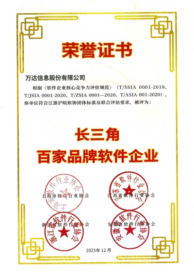万达信息荣获“2025长三角百家品牌软件企业”等多项行业荣誉