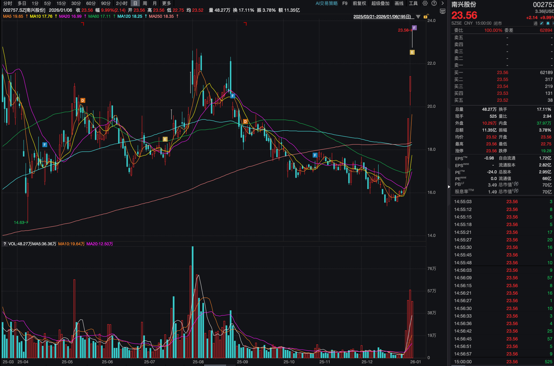 2026年1月6日,南兴股份开盘数万手封单将其牢牢钉在了涨停板上,这是自公司2025年12月29日涨停以来的第四个涨停板,这一度引起市场广泛讨论。