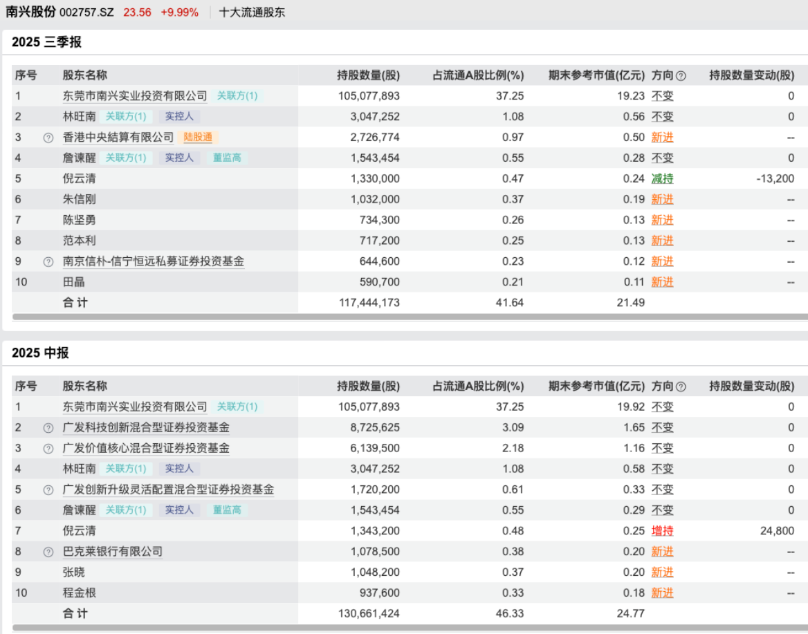 这或许就是为什么在2025年三季度披露时刻,南兴股份前十大流动股东持股占比从年中的46.33%大幅降至41.64%,机构型投资者纷纷离场。
