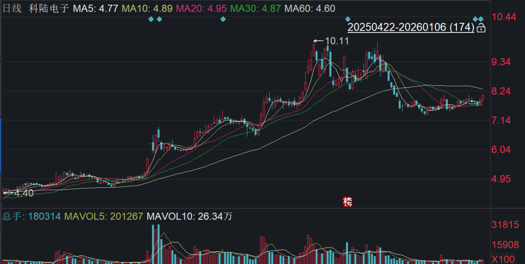 二级市场上,截至1月6日收盘,科陆电子上涨2.54%报8.08元/股,总市值约134.19亿元,2025年公司股价全年累计上涨约77%。