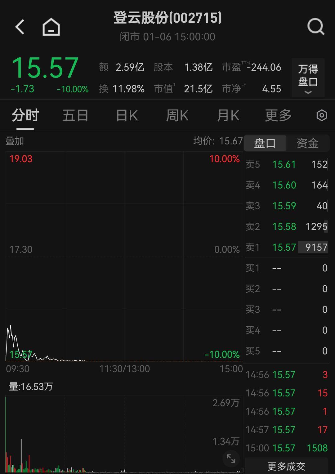 2026年1月6日,上证指数突破十年新高,市场沉浸在一片乐观气氛中,但登云股份(002715)(002715.SZ)却成为当天A股市场唯一非ST跌停的股票,收盘价大幅下跌。