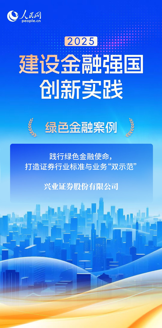 近日,由人民网财经研究院发起的“2025建设金融强国创新实践案例”征集活动结果揭晓。兴业证券(601377)申报的《践行绿色金融使命,打造证券行业标准与业务“双示范”》案例成功入选,成为唯一入选券商,这标志着公司在绿色金融领域实践再次获得国家级权威认可。该案例系统展示了兴业证券从战略顶层设计到标准体系构建、从全链条业务协同到专业人才培育等系统性的创新举措,凸显兴业证券在构建行业标准、服务实体经济绿色转型方面的示范价值。