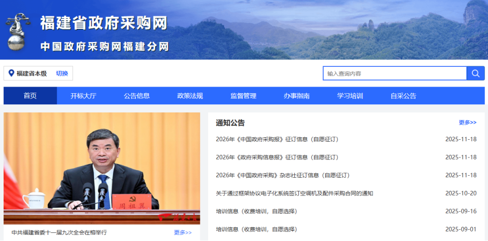福建省政府采购网是福建省财政厅指定的全省政府采购信息发布和电子交易的唯一官方平台,准入审核严格,对企业的资质、产品质量、市场信誉、履约能力及售后服务有着极高的要求。福建省政府采购网将法律的权威性、制度的规范性、技术的先进性和管理的科学性深度融合,打造了一个不仅是为了“完成采购”,更是为了“更好、更省、更放心地完成公共资源配置”的现代化治理平台。它为采购人提供了合规高效的采购工具,为供应商创造了公平便捷的市场机会,为监管部门构筑了精准有力的防控体系,并为社会公众搭建了开放透明的监督窗口。