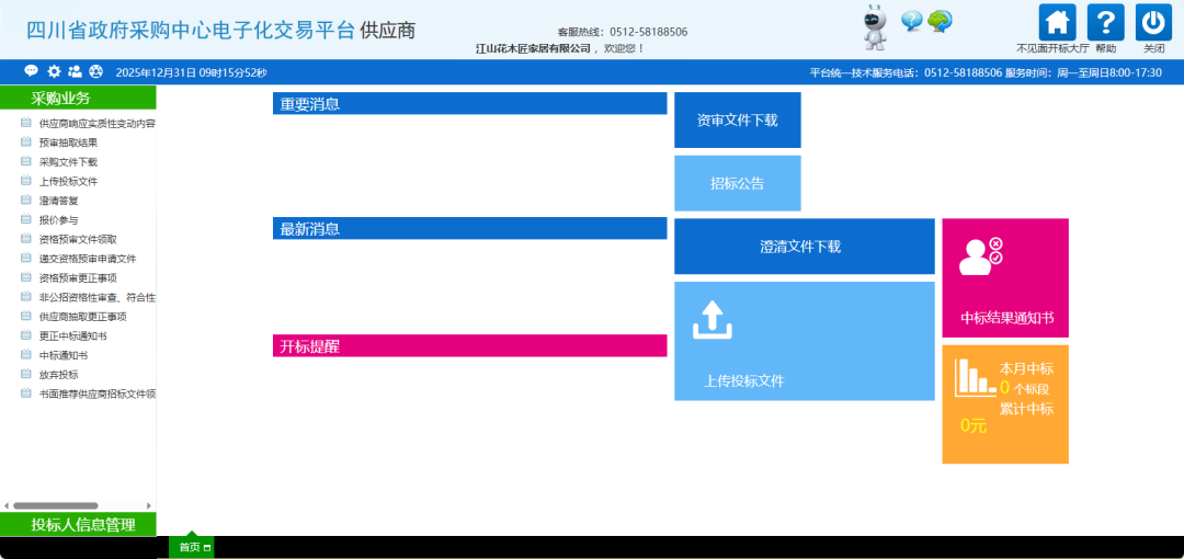 江山欧派成功入库四川省公共资源交易信息网