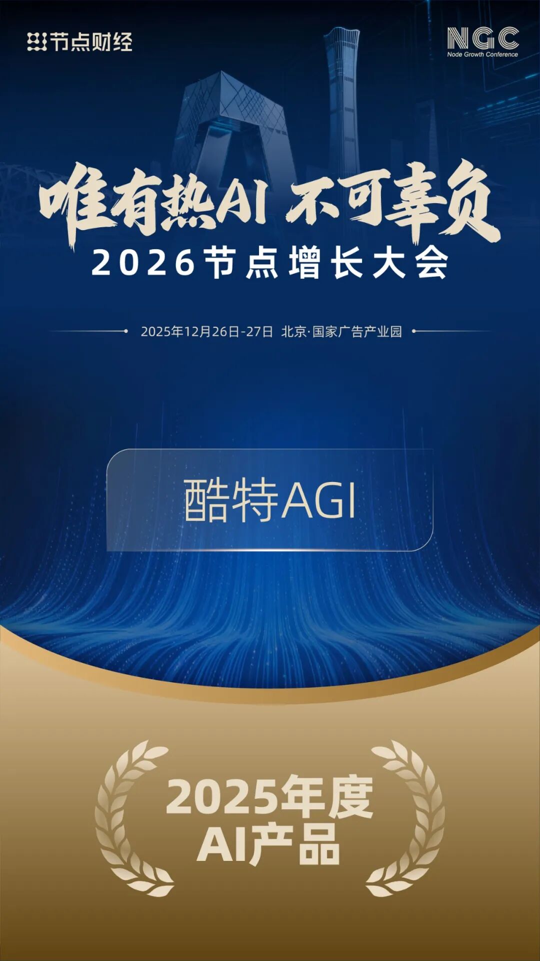 在“唯有热AI 不可辜负 2026节点增长大会”上,由节点财经联合多家行业协会与资深专家共同评选的2025年度系列榜单正式揭晓。其中,酷特智能(300840)所打造的行业级通用人工智能——酷特AGI,凭借在AI赋能实体经济的创新实践与显著成效,成功入选「2025年度AI产品」榜单。