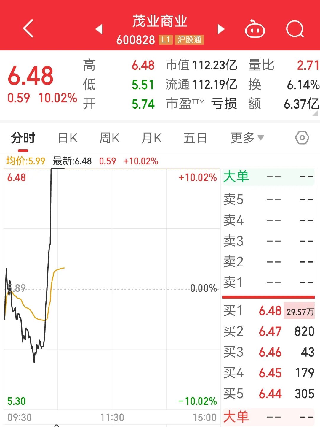 12月9日早盘约10:13左右,A股商业连锁板块突然大幅拉升。茂业商业(600828)在10分钟内由绿盘直线拉升,并触及“10cm”涨停;永辉超市(601933)、中央商场(600280)、三江购物(601116)、国光连锁(605188)、广百股份(002187)等也跟随上涨。