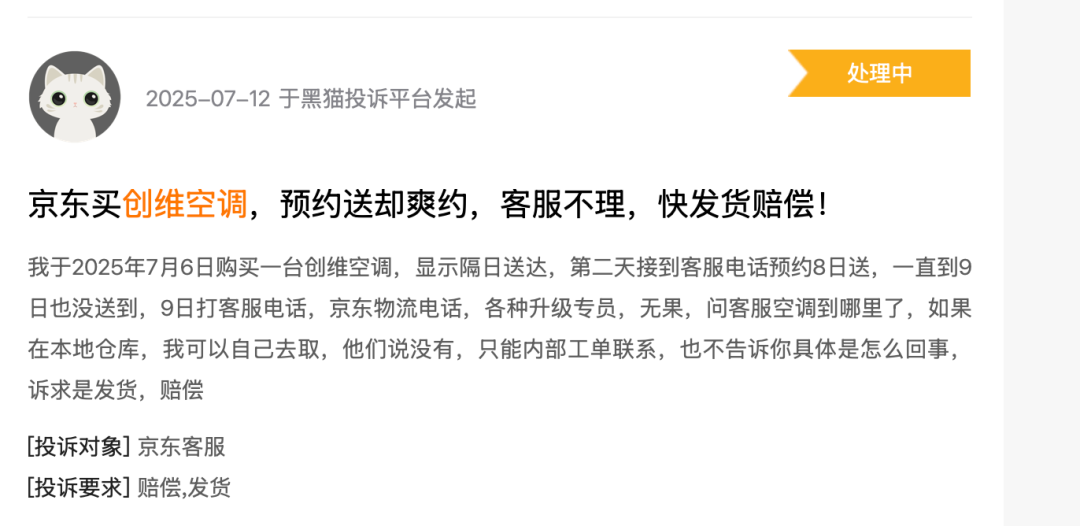 然而,转型的阵痛在企业基本面上逐渐显现。在黑猫投诉平台上,关于创维空调的投诉涉及保修期内拒修、产品异味、故障及售后推诿等多方面问题。