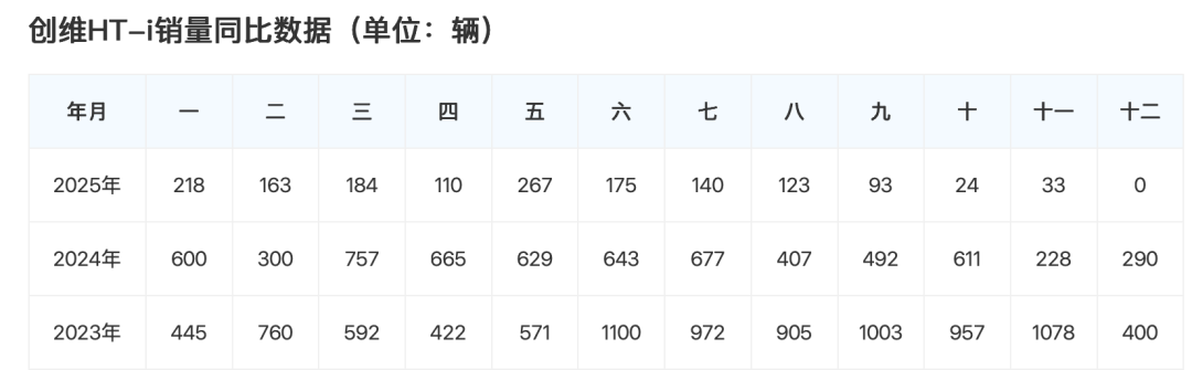 创维汽车目前官方并未公布2025年总销量,但是据创维汽车官微显示,目前创维汽车在售车型有3种,创维HT-i、创维EV6、创维D10。根据太平洋汽车数据统计,2025年1-12月,创维HT-i在11月销量为33辆,2025年累计销量为1530辆,在中型SUV中,月销量排名第93名。年销量排名第93名,国产车中,月销量排名第375名,年销量排名第361名。