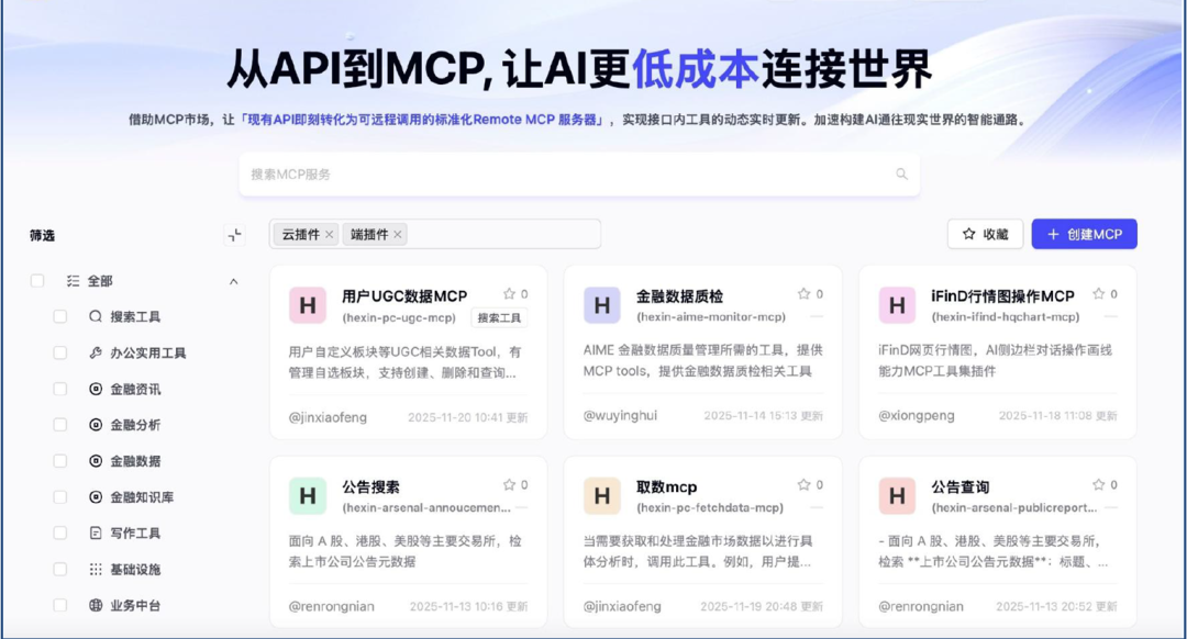 同创智能体工坊可实现对多源专业金融数据的无缝整合与高效接入,全维度覆盖实时行情、新闻资讯、市场情绪、上市公司公告、研究报告及财务报表等高质量金融信息资产。平台通过统一的数据治理框架与标准化接口,保障数据在时效性、一致性和可追溯性方面达到自动化交易系统的工程级标准。