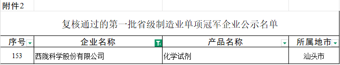 复核通过!西陇科学蝉联省级制造业单项冠军企业(化学试剂)