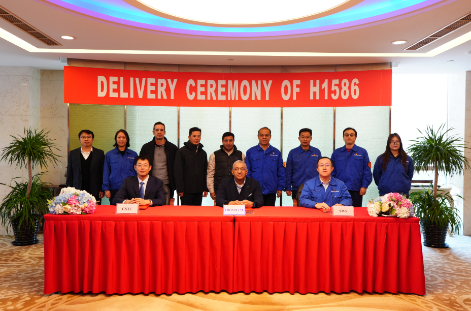 交船开门红 外高桥造船15.8万吨原油轮“海洋双子星”轮签字交付