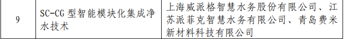 祝贺威派格“SC-CG 型智能模块化集成净水技术”入选水利部《农村供水水质保障