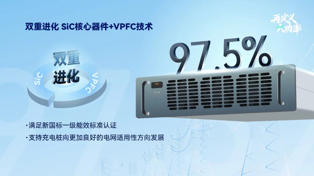 如果说VPFC(动态功率因数调整)功能解决了充电桩与电网之间的协同问题,SiC技术则进一步提升了充电模块本身效率问题。在SiC技术应用与VPFC功能双重技术进化叠加下,新一代欧标SiC(G2)VPFC超高效模块实现了四大核心指标突破: