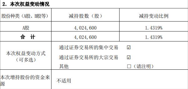 2025年12月2日,公司披露关于控股股东、实际控制人持股比例变动触及1%整数倍的公告,近日公司收到控股股东、实际控制人陈晓俐出具的告知函,陈晓俐于2025年12月1日通过大宗交易方式累计减持公司股份4,250,000股(占公司当前总股本的比例为1.5121%,占公司剔除回购专用账户中的股份数量后总股本的比例为1.5385%),本次权益变动后,公司控股股东及其一致行动人合计持有公司股份数量由70,266,671股减少至66,016,671股,占公司总股本的比例由25.0000%减少至23.4879%,权益变动触及1%整数倍。