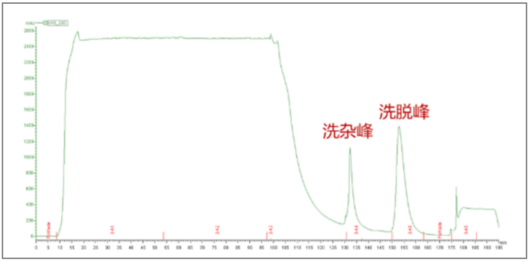 该案例为谷氨酸棒状杆菌表达系统表达的胶原蛋白,蛋白由谷氨酸棒状杆菌分泌至胞外发酵液中,简化了下游纯化的初始步骤。料液离心澄清后,精纯步骤采用 Ni Purose 6FF镍离子螯合亲和层析介质进行高效纯化,该介质具有镍离子泄漏量低、性能稳定、动态结合容量高的特点,确保了工艺在规模化生产中的稳定性与经济性。终产品HPLC纯度图显示最终产品纯度96.73%、收率80%,满足工业化生产对重组III型胶原蛋白纯度、收率与安全性的要求。