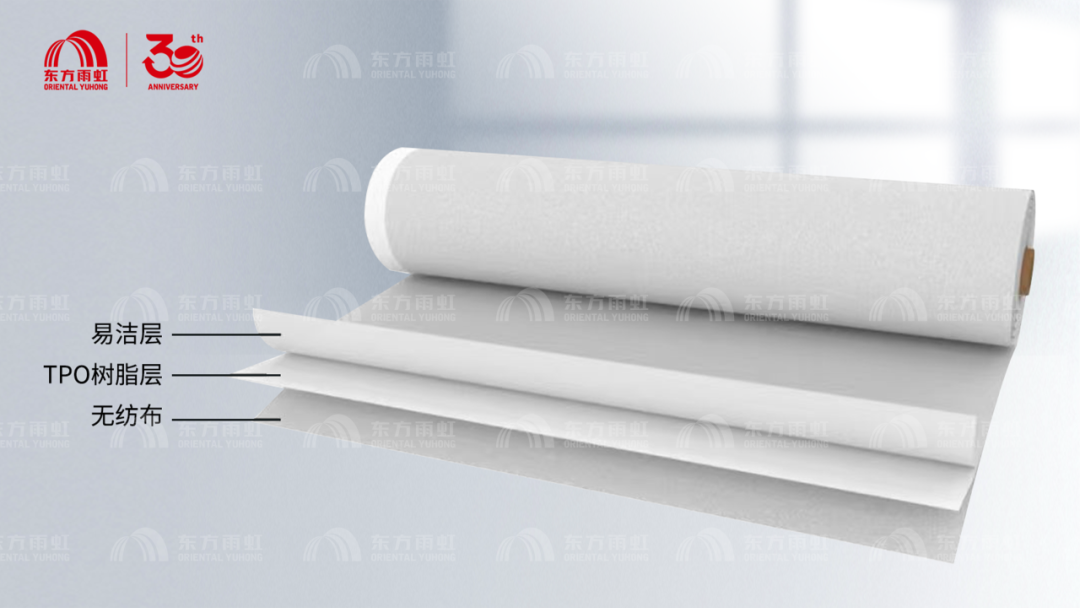 易洁层专利技术防止积灰,浅色东方雨虹TPO防水卷材反射大部分太阳辐射,显著降低建筑物内部能耗。这一特性不仅提升能效,还减少维护成本。