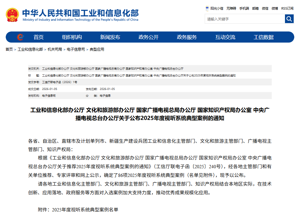 近日,工业和信息化部、文化和旅游部、国家广播电视总局、国家知识产权局和中央广播电视总台联合公布2025年度视听系统典型案例公示名单,惠州雷曼(雷曼光电(300162)全资子公司)凭借“超大尺寸多模态AI智能会议交互系统”(以下简称:雷曼智慧会议交互系统)成功入选。该案例不仅跻身国家级标杆案例行列,更是此次惠州市唯一入选案例。