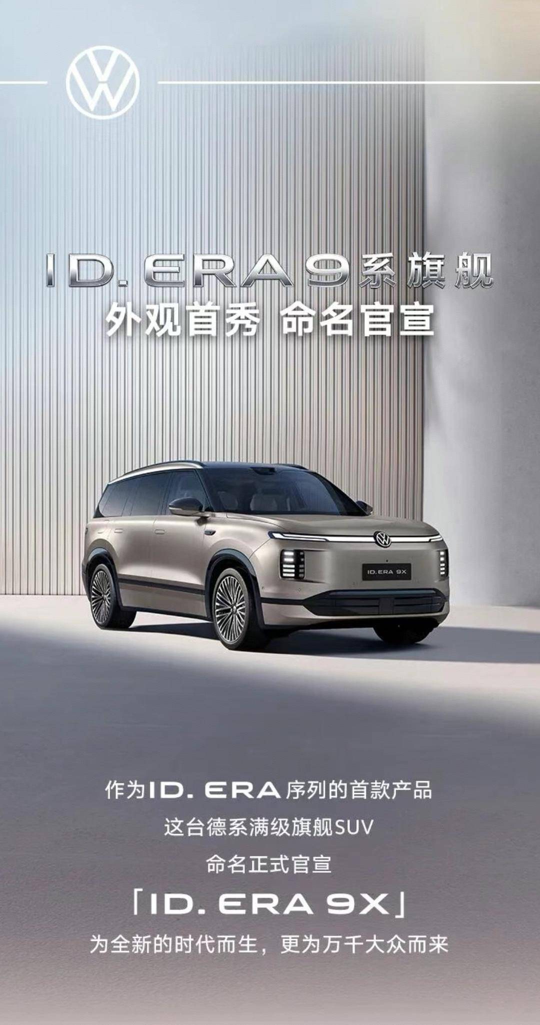 1月8日,备受瞩目的ID.ERA9系旗舰外观首秀,命名官宣。作为大众品牌目前尺寸最大的SUV,它没有喧嚣的口号,仅凭其卓尔不群的身姿便引发业界的广泛关注。在ID.ERA9X身上,我们看到的不仅是一款新车的清晰轮廓,更是一个拥有四十年积淀的合资车企,在新时代背景下对“何为旗舰”的深刻思考和实践回应。