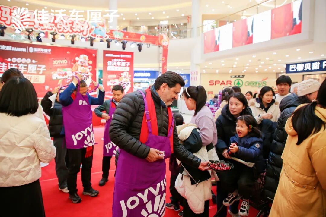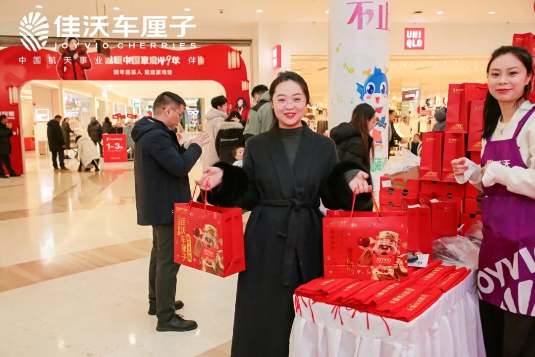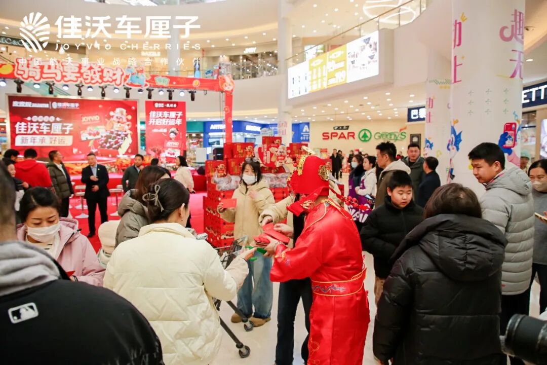 活动现场精彩纷呈,互动不断。一曲高昂的《开门红》唱出了对新年的美好期盼;由“财神爷”亲自巡场派发的多轮抽奖活动,将实实在在的幸运与佳沃车厘子赠礼送到顾客手中,引发阵阵欢笑与掌声。尤为温馨的是,双方领导嘉宾亲自化身“超级促销员”,身着围裙,走到消费者中间,亲切邀请大家品鉴,并与顾客交流分享车厘子的挑选与食用心得,让高品质的消费体验触手可及。
