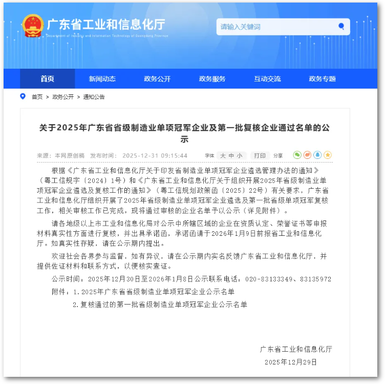 近日,广东省工业和信息化厅正式发布《2025年广东省省级制造业单项冠军企业公示名单》。经过严格评审与公示程序,广东莱尔新材料科技股份有限公司凭借在热熔胶膜领域突出的市场竞争力与技术领先优势,成功入选,被认定为2025年广东省省级制造业单项冠军企业。这一荣誉不仅是对公司在该细分领域专注度、创新能力和市场地位的高度认可,也标志着莱尔科技在专业化发展道路上迈入了一个新的阶段。