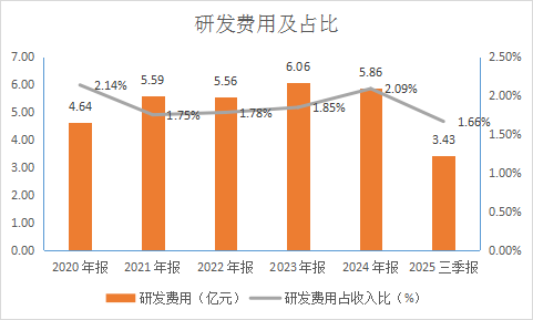 2025年上半年,公司研发投入达2.25亿元,前三季度研发费用进一步增至3.43亿元,虽受整体营收波动影响同比有所调整,但研发投入占营收比例保持稳定,彰显公司对技术创新的长期坚守。依托充足的资金支持,公司持续推进核心技术攻关、新产品研发与创新平台升级,为创新成果落地提供坚实保障。