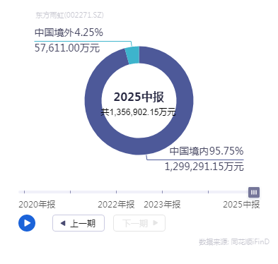 公司海外业务收入从2020年的2.47亿元增长至2024年的8.77亿元,四年间增幅达255%;2025年上半年境外收入同比增幅进一步提升至42.16%,业务覆盖150多个国家及地区。成功拿下越南工业屋面翻修工程、印尼71个港口供货订单等标杆项目,发布海外全新品牌“OYH”及数字化服务平台,实现从“产品输出”到“技术+服务+生态”输出的战略跃迁,有效对冲国内行业波动压力。