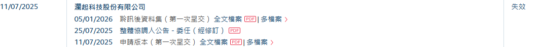 澜起科技股份有限公司(简称:澜起科技,688008.SH)于2025年7月11日所递交的港股招股书满6个月,于2026年1月12日失效,递表时中金、摩根士丹利及瑞银为其联席保荐人。