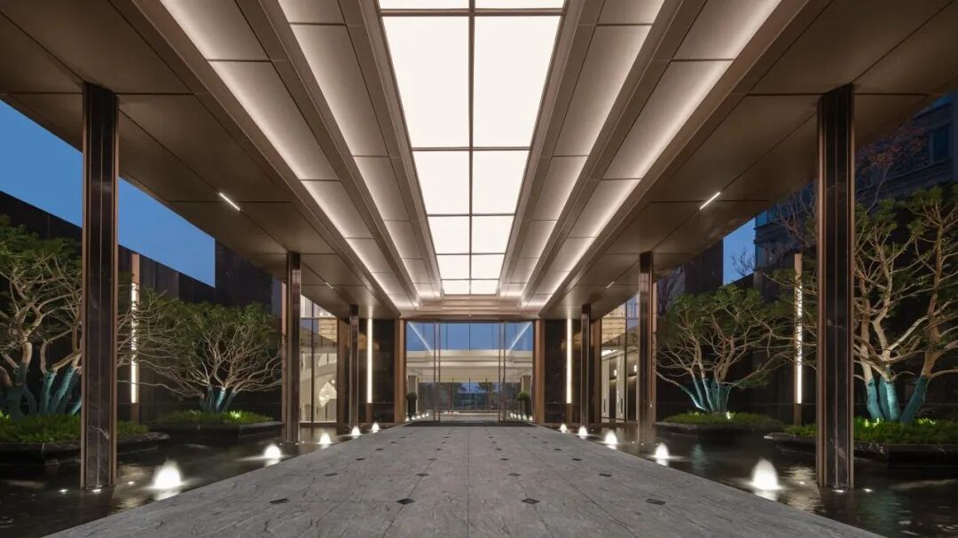 后者则以“五彩鎏金”演绎盛唐气象,通过“四相东方”归家仪序——从宝相流光的落客庭院到密檐金阙的单元门庭,将盛唐礼仪空间转化为当代归家体验。