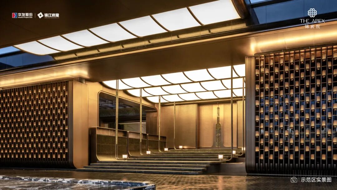 珠海华发香山湖壹号将“凤凰”IP从建筑的门楣“凤冠”造型、景观的羽翼格栅,一直延伸至室内的纹样与屏风,形成强烈的身份认同。成都锦宸院则提取蜀锦“步步锦”纹样,将其作为定制符号融入建筑细部与公区设计,让地域文化在细节中悄然流淌。